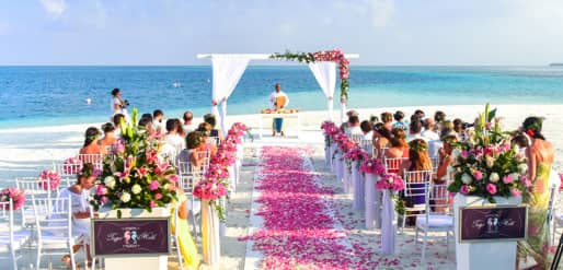 Se trata de una ceremonia de boda, aniversario o ritual religioso que se lleva a cabo en un lugar fuera del área de residencia habitual de la pareja y de la mayoría de sus invitados.
